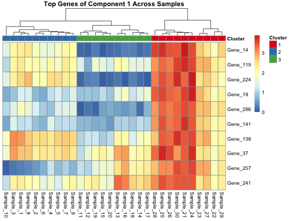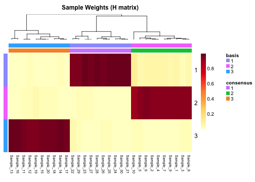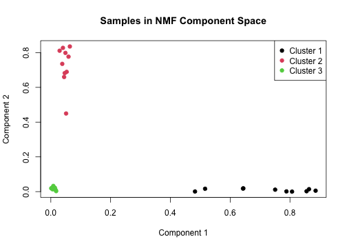 class: center, middle, inverse, title-slide .title[ # Non-negative Matrix Factorization ] .subtitle[ ## Decomposing Gene Expression Data ] .author[ ### Mikhail Dozmorov ] .institute[ ### Virginia Commonwealth University ] .date[ ### 2025-12-01 ] --- <!-- HTML style block --> <style> .large { font-size: 130%; } .small { font-size: 70%; } .tiny { font-size: 40%; } </style> # Matrix factorization — motivation - Many problems require decomposing observed data into interpretable component matrices (find parts that explain the whole). - Standard linear methods: Singular Value Decomposition (SVD), Principal Component Analysis (PCA). - PCA is optimal for minimum reconstruction error under orthogonality constraints, but recovered components may be hard to interpret biologically. - Matrix factorization methods aim to recover a small set of latent sources that combine to form observations. --- # Linear mixing model (general) - Assume observations arise from linear combinations of latent sources: `$$X \approx WH$$` - `\(X \in \mathbb{R}_{\ge 0}^{G\times S}\)` — observed data matrix (rows = **G** genes, columns = **S** samples). - `\(W \in \mathbb{R}_{\ge 0}^{G\times K}\)` — basis matrix (columns = `\(K\)` **metagenes** / basis vectors). - `\(H \in \mathbb{R}_{\ge 0}^{K\times S}\)` — coefficient matrix (rows = metagene expression across samples). - Reconstruction: `\(\hat{X}=WH\)`. Column-wise: `\(x_{\cdot j} \approx \sum_{k=1}^K w_{\cdot k} h_{kj}.\)` - Goal: reduce dimensionality (from `\(G\)` genes to `\(K\ll\min(G,S)\)`) while keeping interpretability. --- # Linear mixing in gene expression - For gene expression / RNA-seq: `\(X\)` contains non-negative measurements (counts, TPMs, normalized counts). - Columns of `\(W\)` are **building blocks** (metagenes): groups of co-expressed genes. - Columns of `\(\hat X\)` are reconstructed sample profiles; each sample's profile is an additive combination of metagenes weighted by the corresponding column of `\(H\)`. - Key challenge: recover both `\(W\)` and `\(H\)` from `\(X\)` alone (an underdetermined problem → need constraints/regularization). --- # Non-negative Matrix Factorization (NMF) - **Model**: given non-negative `\(X\)`, find non-negative `\(W, H\)` such that `\(X \approx WH\)`. - Non-negativity prohibits subtractive reconstruction — parts combine additively to form the whole. - Equivalently, for each sample `\(j\)`: `$$x_{\cdot j} \approx \sum_{k=1}^K w_{\cdot k} h_{kj}.$$` - NMF yields **parts-based** decompositions that are often biologically interpretable. --- ## NMF (visual) <img src="img/nmf.png" width="550px" style="display: block; margin: auto;" /> .small[ J. Brunet, P. Tamayo, T.R. Golub, & J.P. Mesirov, Metagenes and molecular pattern discovery using matrix factorization, Proc. Natl. Acad. Sci. U.S.A. 101 (12) 4164-4169, https://doi.org/10.1073/pnas.0308531101 (2004). ] --- # Biological interpretation - Columns of `\(W\)` correspond to **metagenes** — sets of genes that co-vary (possible pathways, cell types, programs). - Rows of `\(H\)` (or columns when viewed per sample) give **sample-specific weights** — activity of each metagene in each sample. - Example: Metagene 1 = immune genes; Metagene 2 = cell-cycle genes. Each sample is a non-negative mixture of these programs. - Advantages for biology: - Non-negativity aligns with count/abundance data. - Often yields sparse factors: each metagene involves a subset of genes; each sample activates a subset of metagenes. --- # NMF: objective & probabilistic view - Common objective (Euclidean / Frobenius norm): `$$\min_{W\ge 0,\,H\ge 0} \|X - WH\|_F^2.$$` - Probabilistic view (Gaussian noise): maximizing likelihood leads to the same squared-error objective (subject to non-negativity constraints). - Alternative cost: Kullback–Leibler divergence `$$D_{KL}(X\|\hat X)=\sum_{i,j} X_{ij}\log\frac{X_{ij}}{\hat X_{ij}} - X_{ij} + \hat X_{ij},$$` useful when modeling Poisson-like count behavior. --- ## NMF idea (figure) <img src="img/nmf_idea.png" width="900px" style="display: block; margin: auto;" /> --- # Optimization & Algorithms * **Optimization challenge:** * NMF is **non-convex** in both `\(W\)` and `\(H\)` → multiple local minima. * **Initialization** strongly influences results and convergence. * **Common algorithms:** * **Multiplicative updates** (Lee & Seung): simple, preserve non-negativity. * **Alternating least squares** with non-negativity constraints. * **Coordinate descent** and **projected gradient** methods. * **Typical workflow:** 1. Initialize `\(W,H\)` (random or SVD-based). 2. Alternately update `\(H\)` and `\(W\)` until convergence. 3. Repeat multiple runs (`nrun`) to evaluate **stability** and **reproducibility**. --- # Cost Functions & Practical Considerations * **Common objective functions:** * **Squared error:** `\(F(W,H)=|X-WH|_F^2\)` * **Kullback–Leibler divergence:** `\(D_{KL}(X|WH)\)` * **Regularization and constraints:** * **Sparsity (L1)** on `\(W\)` or `\(H\)` → enhances interpretability. * **Smoothness** or **orthogonality** constraints → improve factor distinctness. * **Best practices:** * Because initialization is stochastic, **repeat runs** and assess **consensus**. * Choose **cost function** and **constraints** based on data characteristics and interpretation goals. --- # Why nonnegativity / historical notes - NMF roots: positive matrix factorization, nonnegative rank factorizations; popularized for parts-based learning by Lee & Seung (1999). - Non-negativity yields additive, non-subtractive building blocks — conceptually attractive for gene expression and other abundance data. --- # NMF for clustering & soft membership - `\(H\)` provides a low-dimensional representation (meta-gene space); can use `\(H\)` for downstream tasks: - Clustering of samples (soft assignments). - Classification in meta-gene space. - NMF naturally handles overlapping clusters: samples can express multiple metagenes to varying degrees. <img src="img/nmf_clustering.p